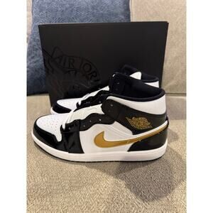 Sz 10 - Jordan 1 Mid Patent Black White Gold