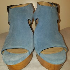 Sz 10 Michael Kors Josephine Blue Suede Wedges