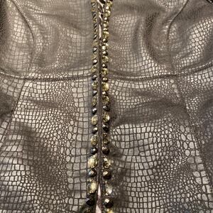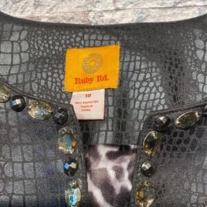 Sz 10 Ruby Rd. Jacket. Black leather looking/ snake like jacket. Very unique with the bead work all the way around the neck down to the bottom of the jacket. Very cool. Excellent condition. Light weight. Must have. To small for me :( smoke free home.