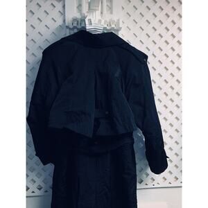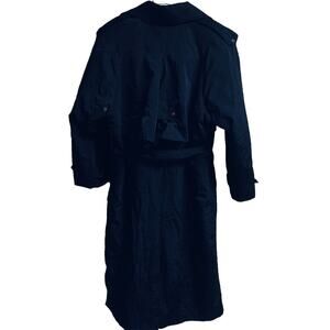 Sz 10 Vtg Maggie Lawrence Long Trench Rain Coat Black Belted Zip Out Lining EUC