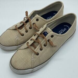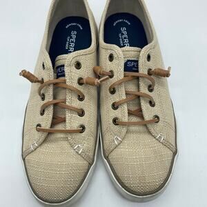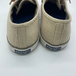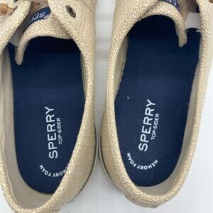 Sz 10 Women’s Sperry Top Slider. These shoes have memory foam and like new condition other than bottoms which are a little dirty. Tops and cloth material very clean.