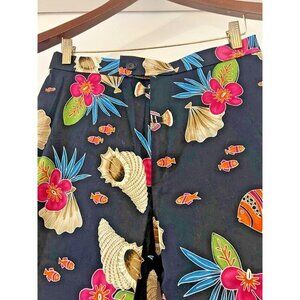 Sz 12 Woman BRIGGS Tropical Fish Seashell Black Capri Pants Hawaii Vacay Island