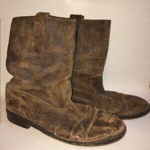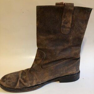 Sz 13 Men's Italian Brown Distressed Leather Mid Calf Boots