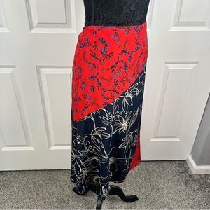 Sz 14 Eloquii Red & Blue Floral Color-Block MIDI Skirt NWOT $104 MSRP