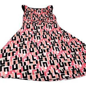 Sz 16 Pink Black Geometric Midi Dress Career Retro Chic Mod Style Retro Chic