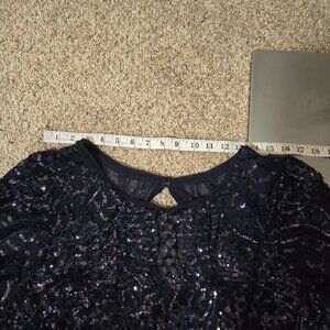 Sz 16W R&M Richards 1875 Sequined Illusion Short-Sleeve Modest A-Line Gown Navy