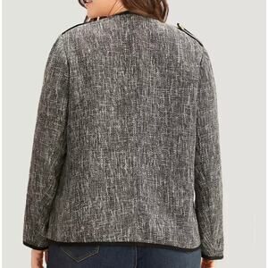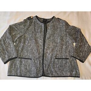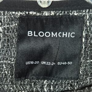 Sz 18/20 BLOOMCHIC Black White Tweed Black Trimmed Collarless Pocket Jacket
