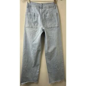 Sz 2 OAT New York Light Wash High Rise Wide Leg Jeans Raw Hem Denim Minimalist