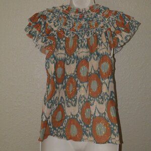 Sz 2 XS/S Ulla Johnson Reema Cream Blue Gold Metallic Gold Blouse