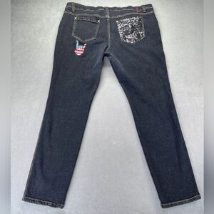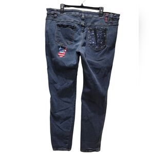 Additional Information: Navy Blue Sequins, Classic Fit, Embroidered, Mediumwash, Patriotic, USA, Americana, Boho, Bohemian, Casual, Party, Comfy, Stretch, Zippered, 5 Pocket, Retro, Cotton, Spandex, Vintage