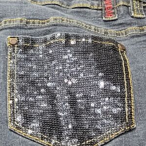 Sz 24 ROCAWEAR Vintage Classic Fit Blue Dark Wash Embroidered Sequins USA