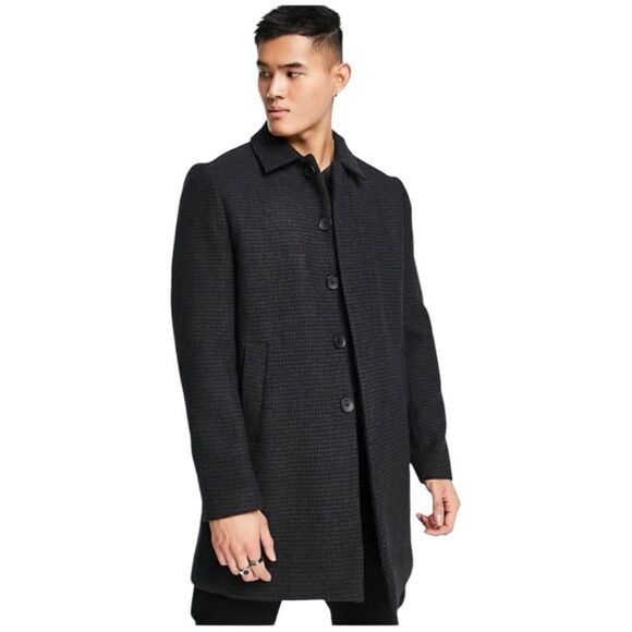Sz 2X Daniel Hechter Paris Men's Black Wool Overcoat $298 MSRP NWOT