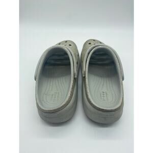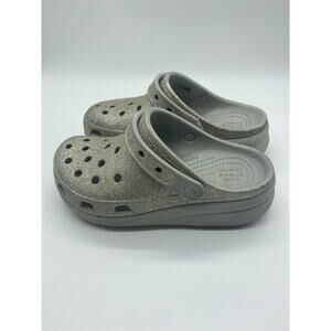 Sz 3 Junior Crocs. Silver crocs with a 2 inch wedge. Lots of Love left.