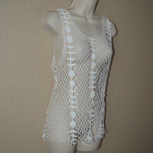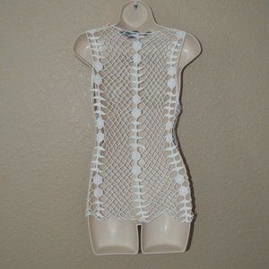 Sz 3 S/M Raquel Allegra Black Knit Crochet See Thru Top