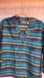 Really prettier in person in bright turquoise, teal blue, royal blue, black, lime green stripes with Silver metallic thin stripes.
