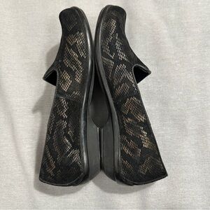 Sz. 36 Dansko Olivia black/gold snake print loafers, comfort, walking, slip-on