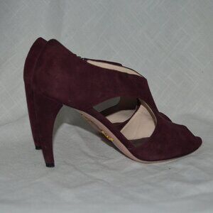 Sz 36.5 6.5 Prada Purple Suede Peep Toe Side Zip 3.5" Heels