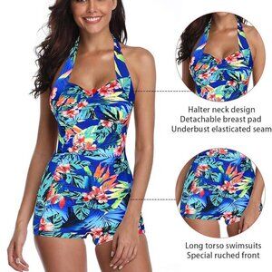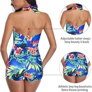 ⇒ Feature - Women's one piece swimwear designed with adjustable high neck halter & Cute sexy V neckline & Pin Up supportive push-ups & High waist "S" curve body shape & Ruched Tummy Control stylish ruffles & Supportive U back & Active boyshorts. Double Layer, Scrunch design of bottom helps lift and contour your shape, making you more charming, attractive, fashion and chic.