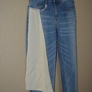 Sz 4 Hellessy Silk Cream Tie Sash Jewel Detail Denim Blue Jeans