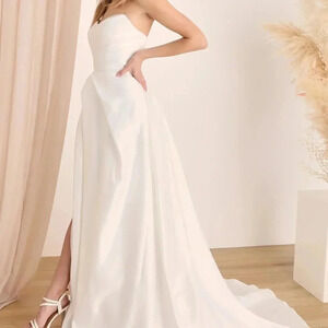 Sz 4 NWOT Lulus Lifetime of Love White Satin Strapless A-Line Gown