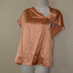 Sz 4 S Dion Lee Apricot Silk Cap Sleeve Asymmetrical Blouse Top