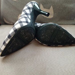 Gently used size 5.5 black and white plaid fabric 3" heels by Comfort Plus (by Predictions). Minimal signs of wear, perfect for the office!