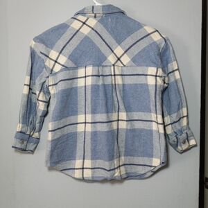 Sz 6-7 Zara Boys Flannel Shrit Blue Plaid Longsleeve Button Down Top