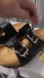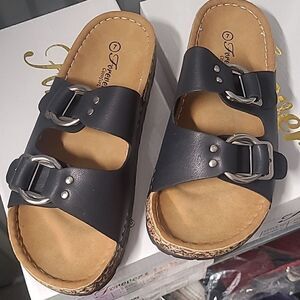 Sz 7 Black Faux Leather Two Buckle Sandals