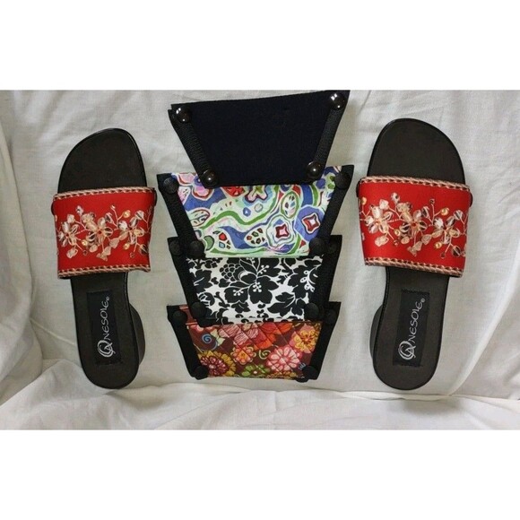 Sz 7 NEW ONESOLE Interchangeable Black Stretchy Shoes Slip On Sandals + Toppers