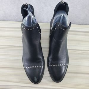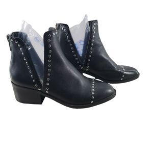 Size 7 Steve Madden Conspire Booties with silver studs, supple black leather, one toe has a scuff see photo #4. Otherwise lightly used condition.