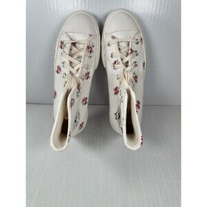 Sz 7.5W Converse Chuck Taylor All Star Hi Lift Floral Embroidery White Platform.