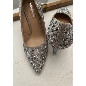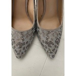 Sz 8 Antonio Melani Silver Mallana Grey Sequined/Rhinestoned Leather Heels Pumps