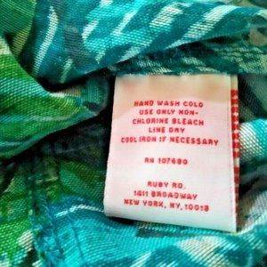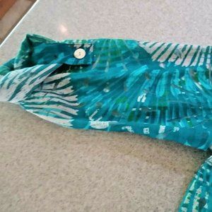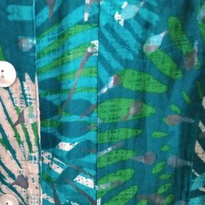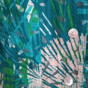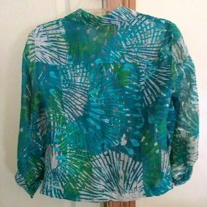 Ruby Rd. Sz 8 Blouse Jacket Blue Green Multi Semi-Sheer Burnout Roll Tab Sleeves