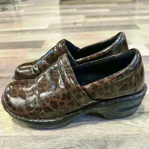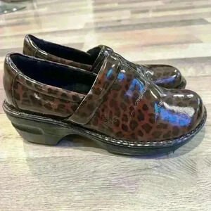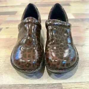 Born B.O.C BOC Animal Print Leopard Brown Patent Leather Clogs Sz. 8