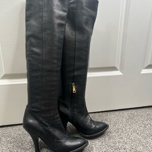 Sz 8.5 (38.5 EUR) Prada Black Leather Over the Knee Heeled Boots $1400 MSRP