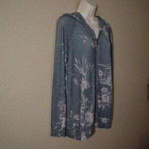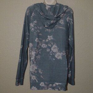 Sz L Cha Sor Gray Pink Floral Zip Up Hooded Soft Jacket