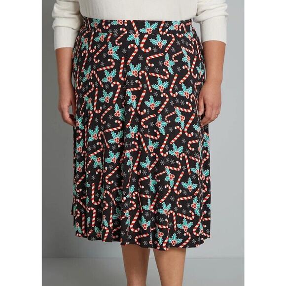Sz L Large • ModCloth Mod Cloth Candy Cane Holiday Christmas Skirt w/ Pocket NWT