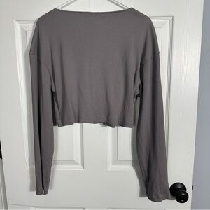 Sz. L Puma wrap crop top, gray, stretch, long sleeve, casual, date night