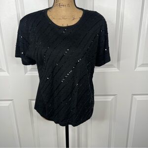 Sz L Kathy Ireland Silk Wool Blend Sequin Knit Short Sleeve Top