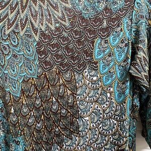 This dress is Fabulous! Very flattering and cute on! The sleeves are 3/4 length. Good used Condition. I say good instead of great because a couple of stitches are loose I did picture it.