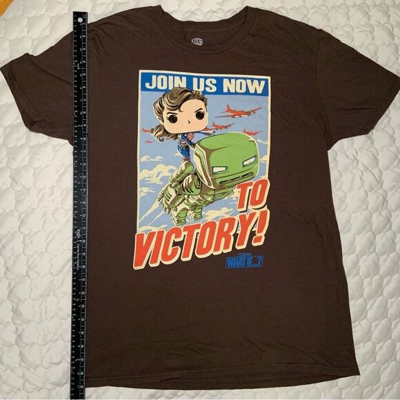 Sz Large Brown Marvel Funko Pop What If Series Shirt with Peggy Carter. Good used condition.