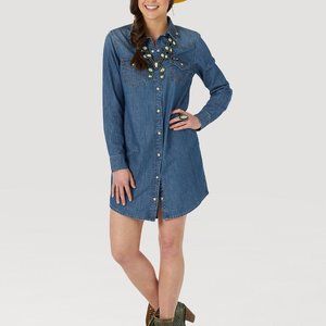 Sz M Chiqle Western Denim Shirt Dress with Pearl Snaps