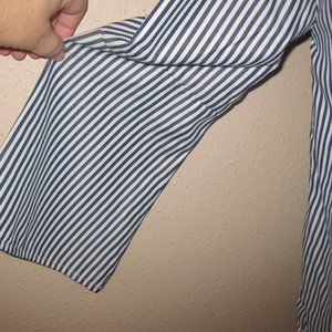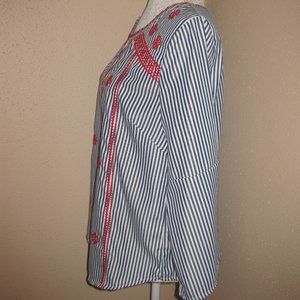 Sz M Francesca’s Blue Rain Red Embroidered Blue Striped Shirt