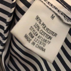 GUC, Size Medium, 90% Polyester 10% Cotton, Bell Sleeves, From Francesca's, Navy Blue & White Striped with Red Embroidery,