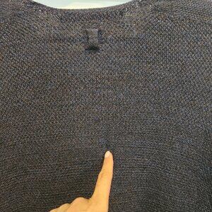 Stay cozy and stylish with this minimalist indigo-brown-black wool knit sweater. Perfect for casual wear on its own or for layering.