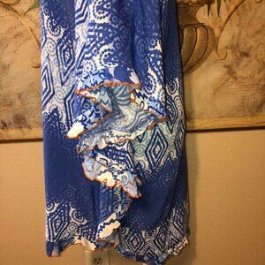 Sz M Kalypso 7 Blue & White Ombre Print Beach Coverup with Orange Embroi…