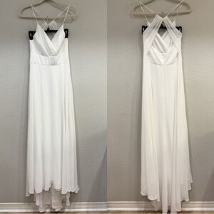 Sz M NWOT Lulus Romantic Inspiration White Sleeveless Faux-Wrap Maxi Dress
