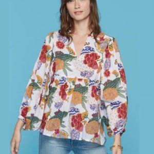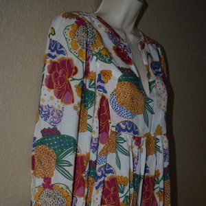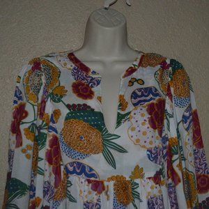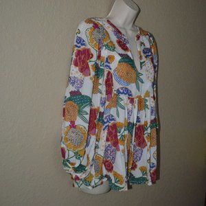 Sz M Roller Rabbit Multicolor Floral Cheri Long Sleeve Blouse