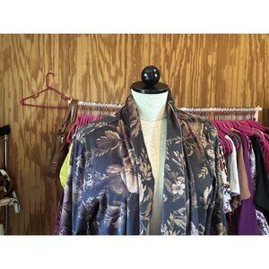 This listing is for Soft Surroundings Sz L Shape Drape Faux Suede Jacket Floral Open Cardigan Brown