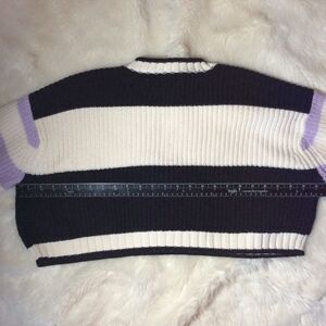 Sz Medium American Eagle Cropped Cable Knit Sweater. Black, creamy white and lavender striped. Good used condition